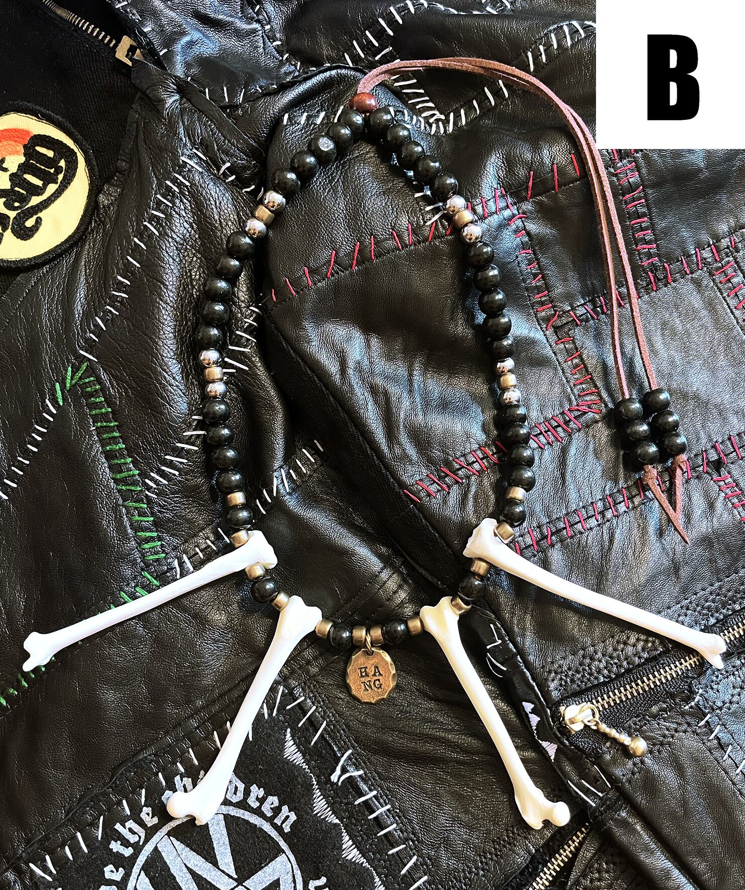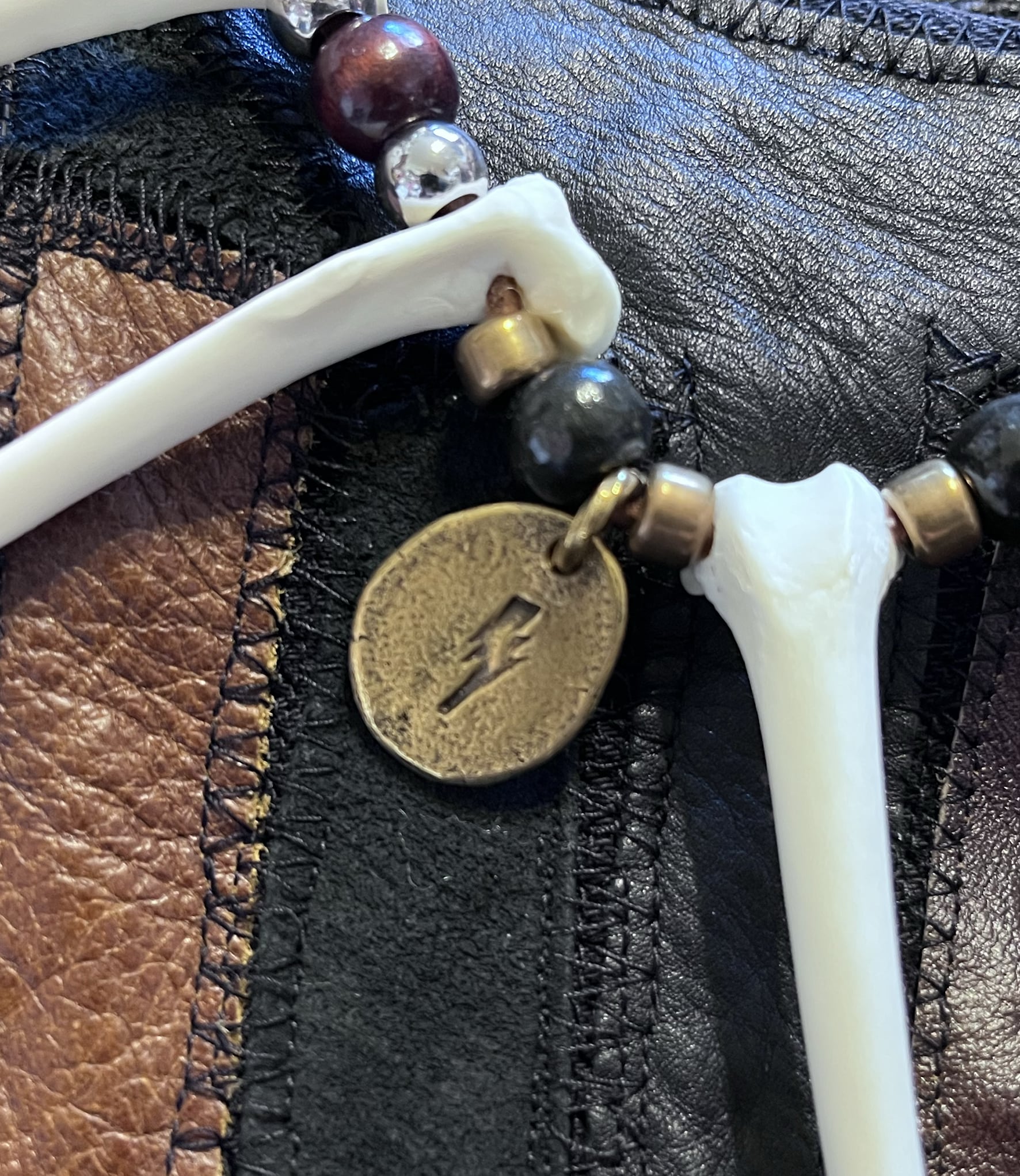 本物のテンの骨をシリコン加工し、使用したネックレスです。