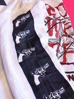 袖は左右アシンメトリーで、拳銃の連続パターンとショットガン。