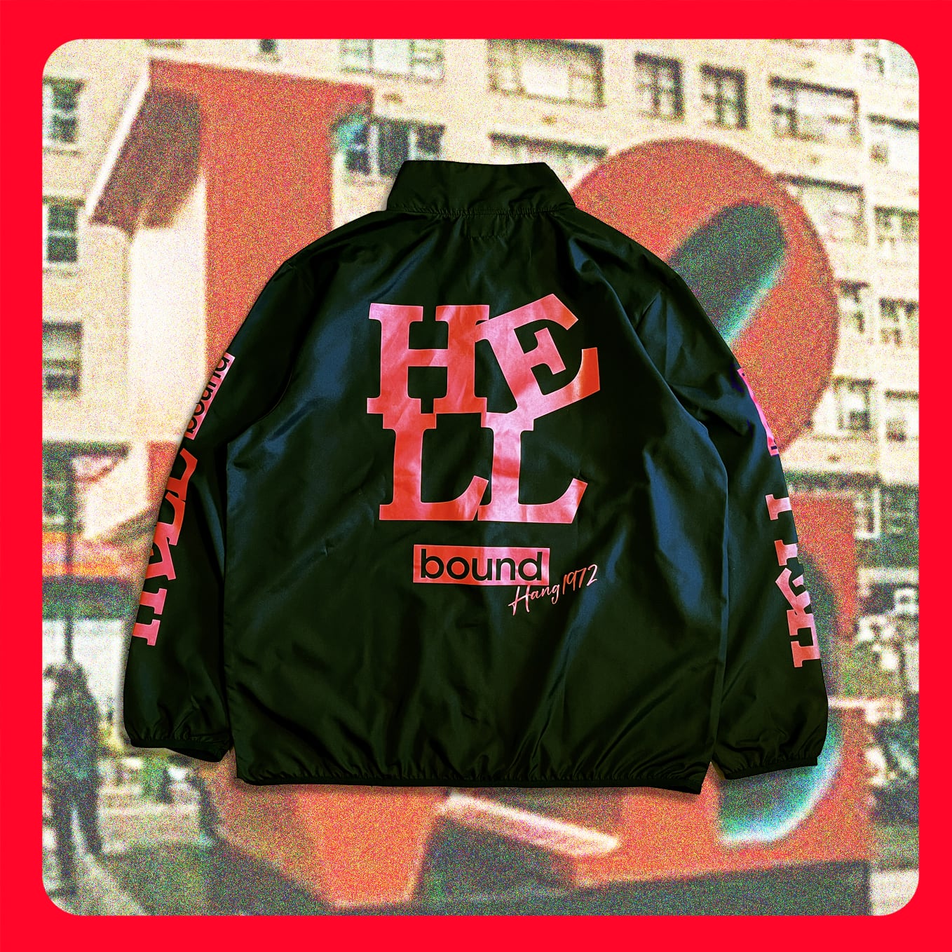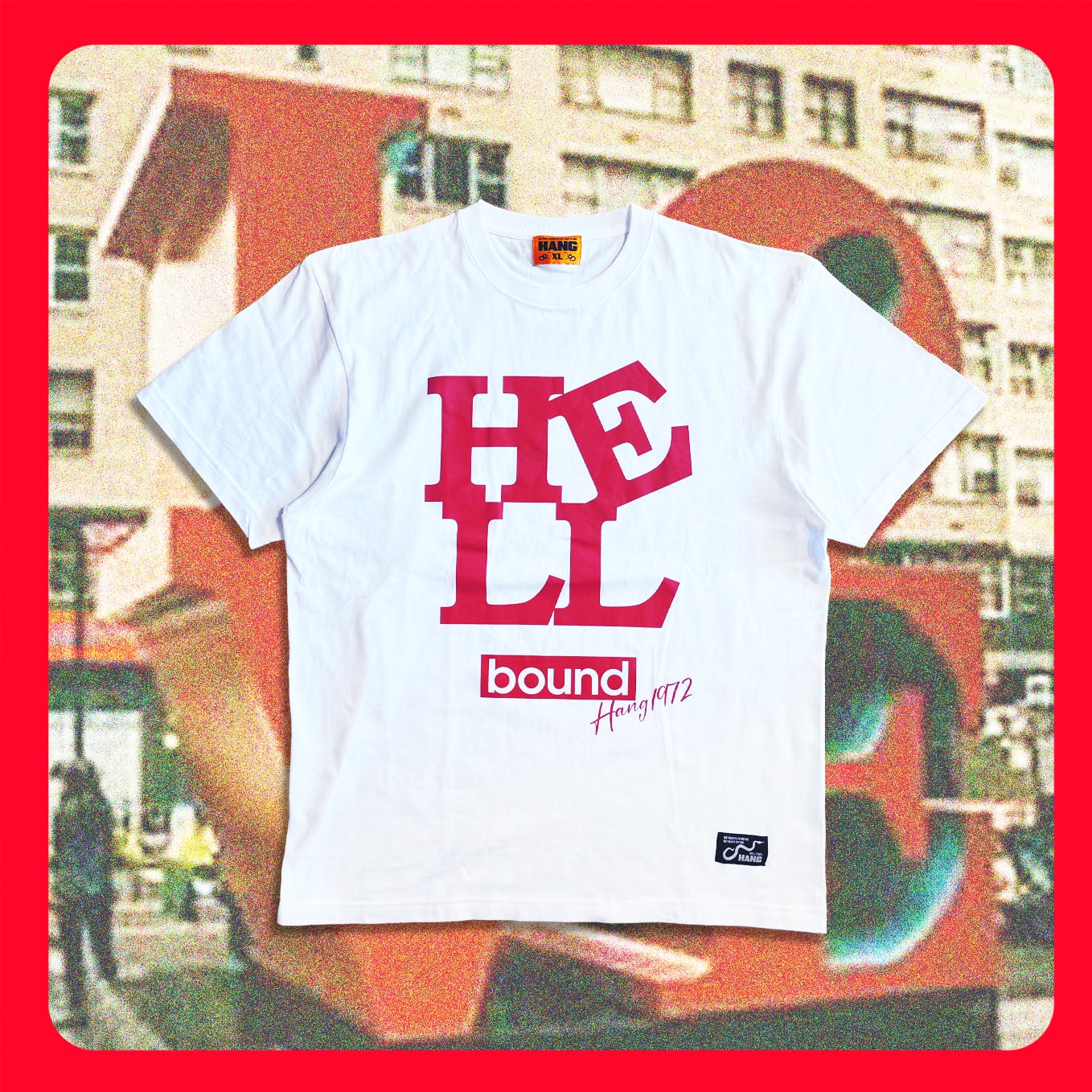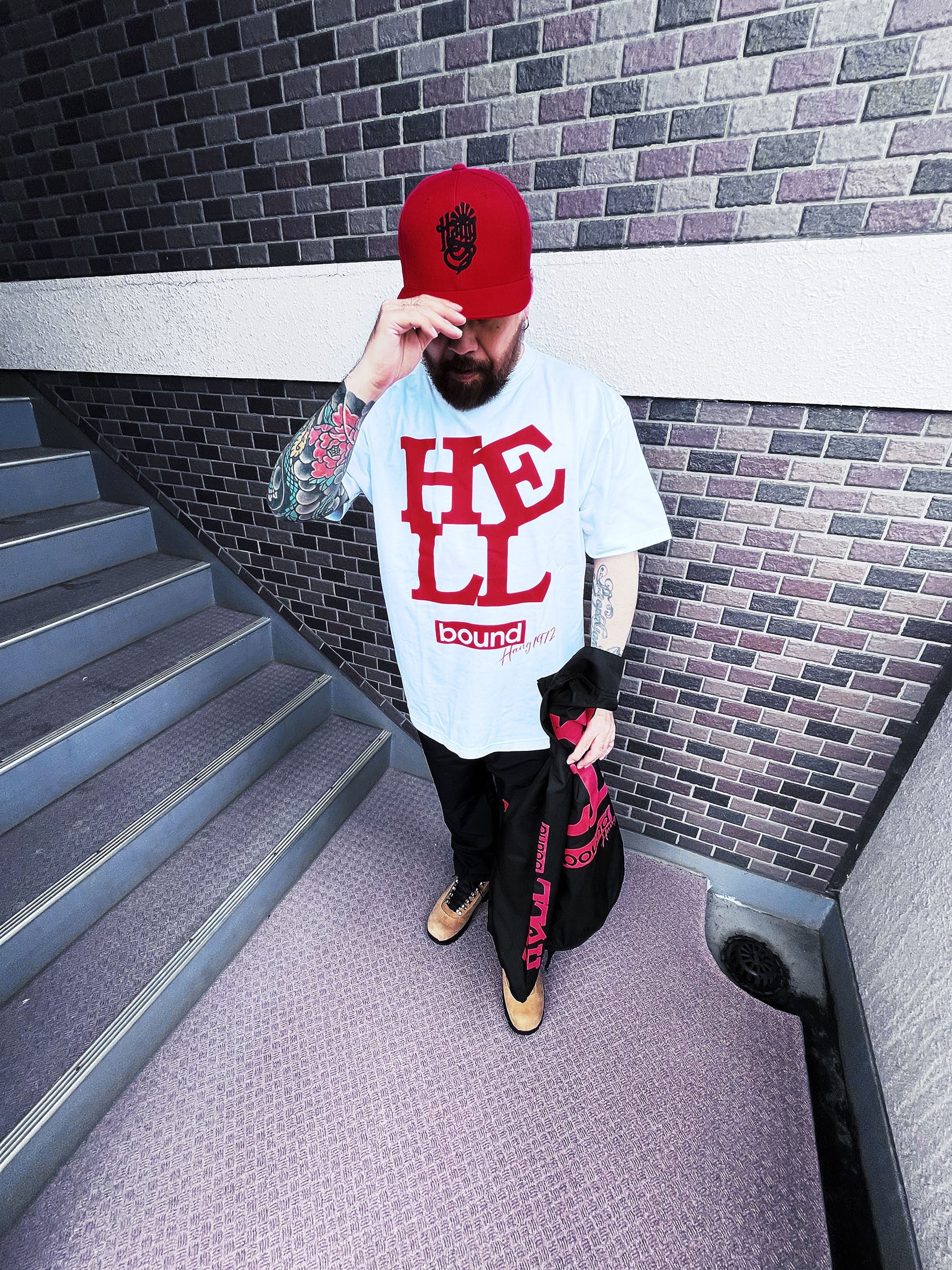 強烈なインパクトを放つ「HELL bound」のタイポグラフィを全アイテムに配置。