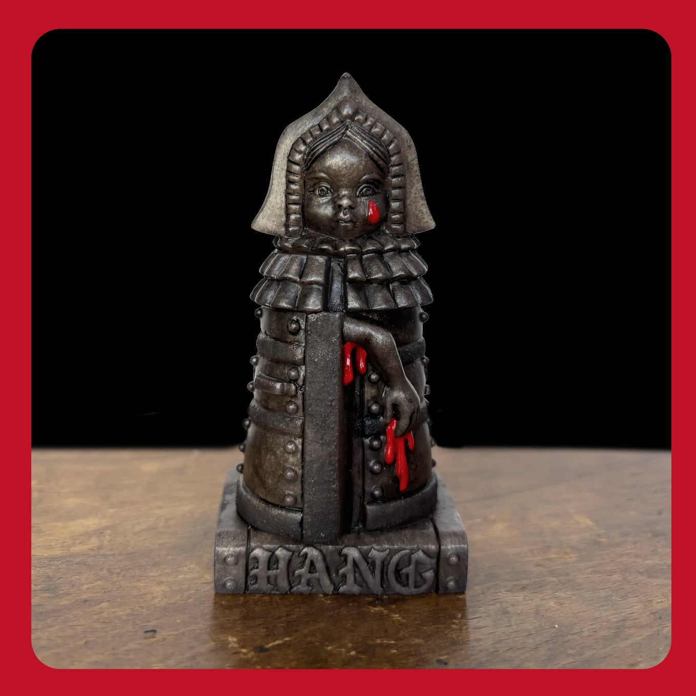 今回、HANGが提示するのは、そのアイアンメイデンを現代のアートピースへと昇華させたレジンスタチューです。